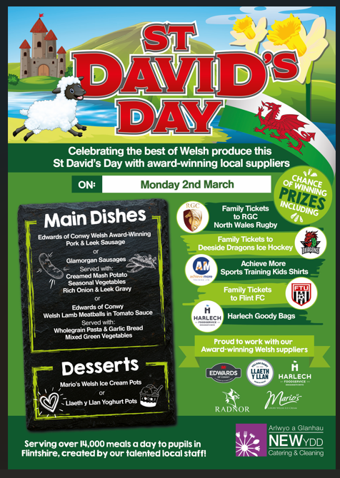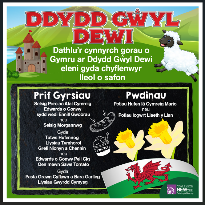 To celebrate St David's Day, children are invited to wear welsh colours to school next Friday, 6th March. Diolch
